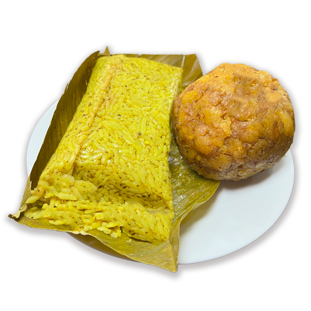 Bola de tacacho acompañado de 1/4 de pollo broaster.